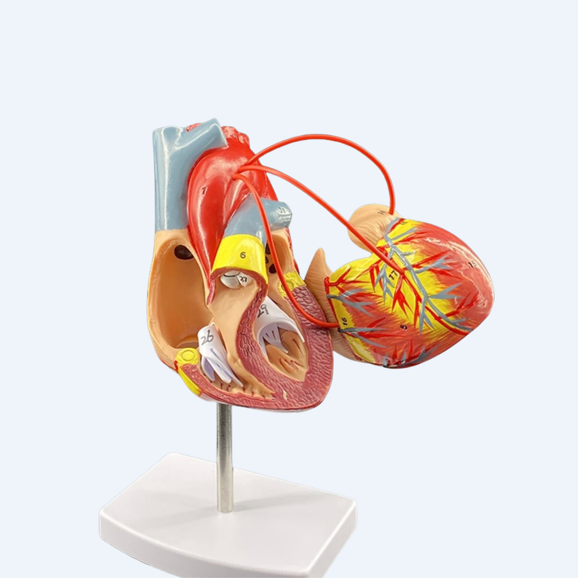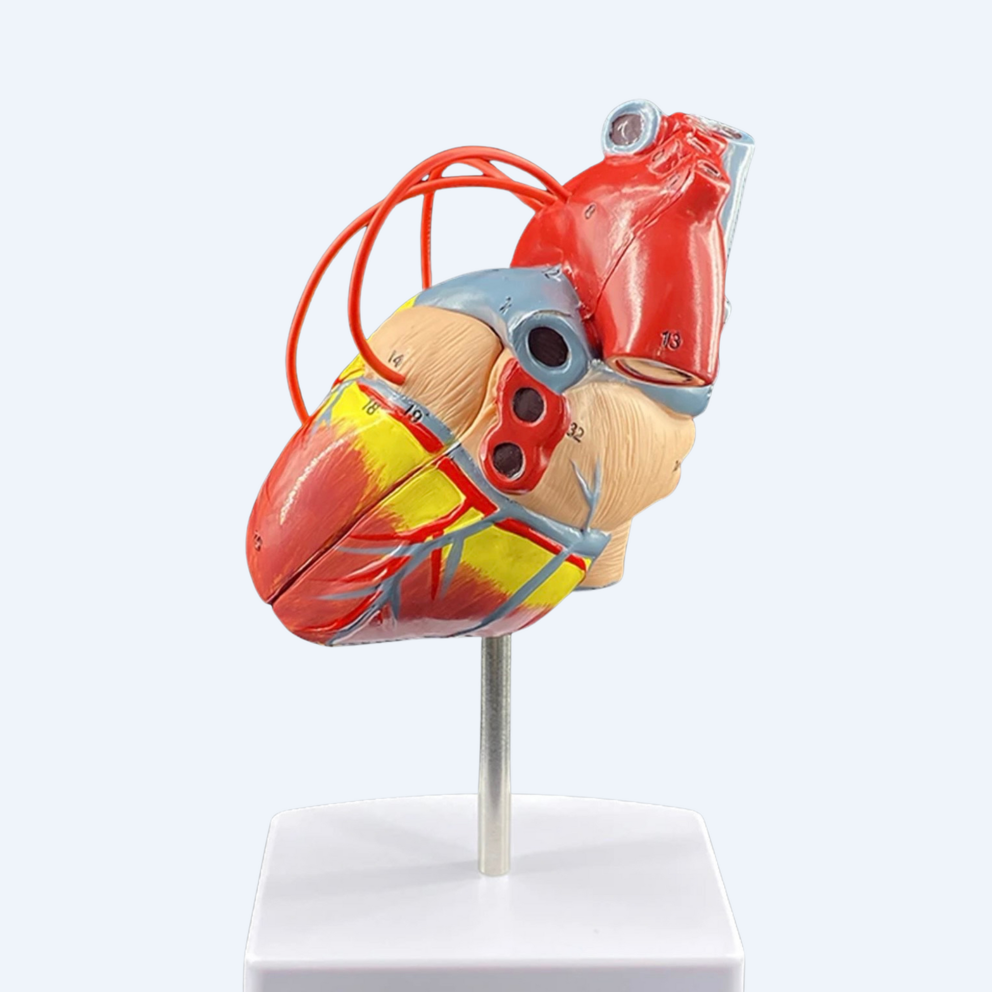 - მოდელი გაკეთებულია მკაფიო ფერებით, ასე უკეთესად ჩანს გულის სხვადასხვა ნაწილებს შორის განსხვავება